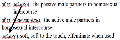 The Greek as well as a number of other languages have entirely distinct terms for the active and passive roles in homosexual intercourse.